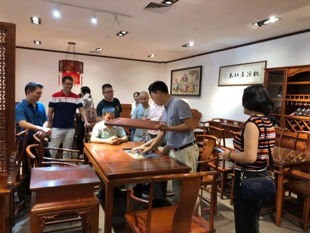 陈总带领我们参观了红木家具成品,向我们一一介绍了各式木料家具,让大家切身体验红木文化,细细品味雕刻工艺的精髓魅力,悉心解答大家对红木家具的疑惑,让大家有进一步了解,懂得如何挑选适合自己的产品。