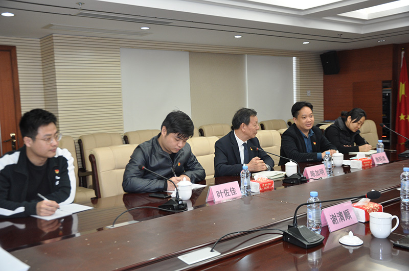 2019年2月26日下午,深圳市社会组织党委副书记郭建、纪委副书记谢清顺等一行莅临深圳市福建商会党委视察调研。商会党委副书记纪委书记陈加明、党委副书记陈明旗等参与接待座谈。郭副书记一行参观商会党建会建展览室后,在会议室举行汇报、座谈。