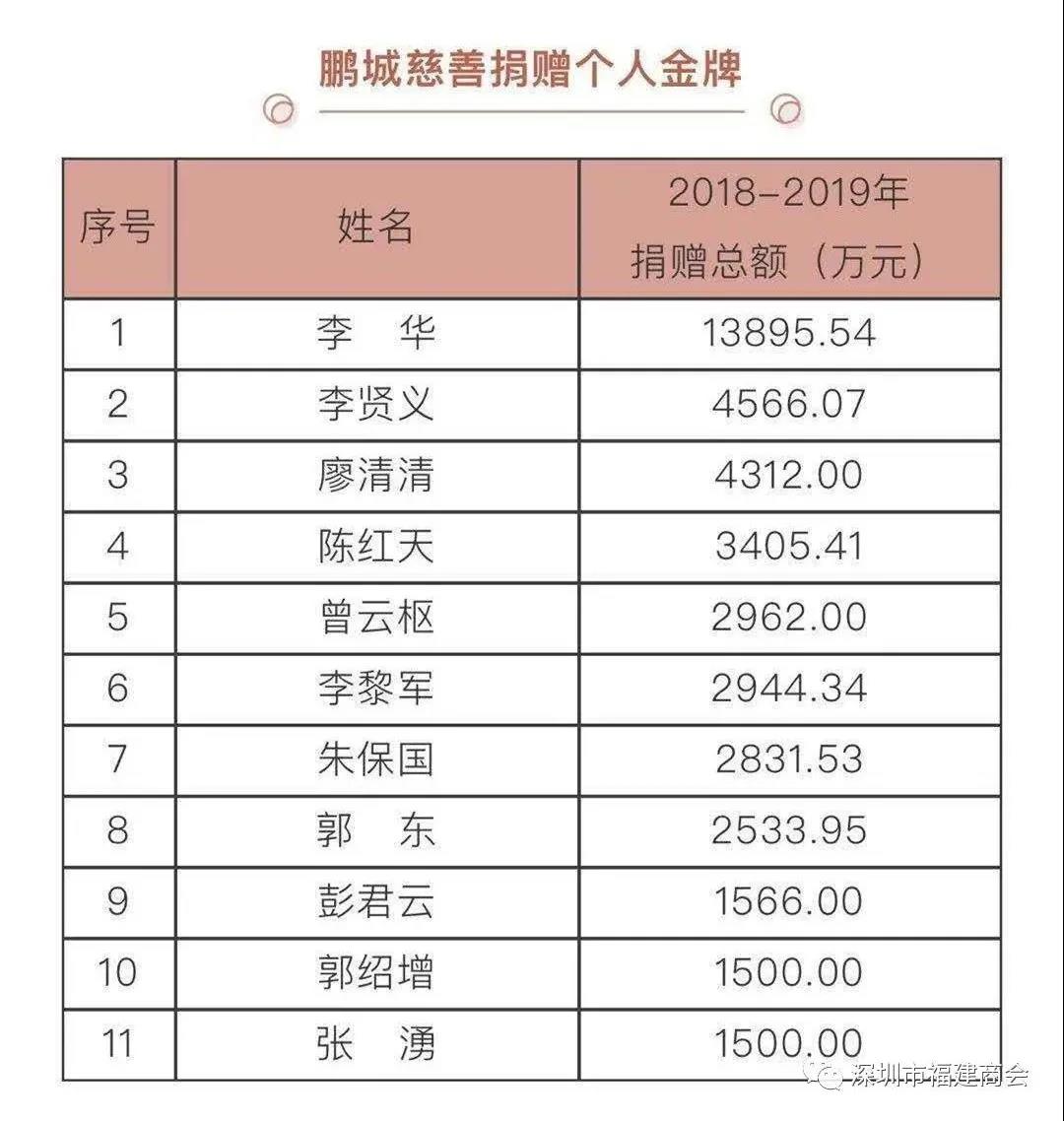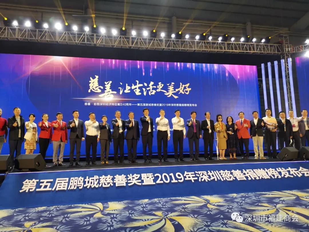 深圳市民政局局长廖远飞现场发布了2019年度深圳慈善捐赠榜。全国政协委员、深圳市福建商会创会会长李贤义先生获“鹏城慈善40年致敬人物”和“鹏城慈善捐赠个人金牌”两项殊荣。2019年,创会会长李贤义先生捐赠4566.07万元,连续第五次获得鹏城慈善奖荣誉。李贤义先生热心并长期致力于扶贫济困、教育环保、见义勇为等慈善公益事业,累计捐赠数亿元人民币,曾获“杰出的爱国港商”、“全国热心见义勇为典范”、“中华慈善奖”、“中华慈善突出贡献人物奖”、“热心桑梓”奖、“广
