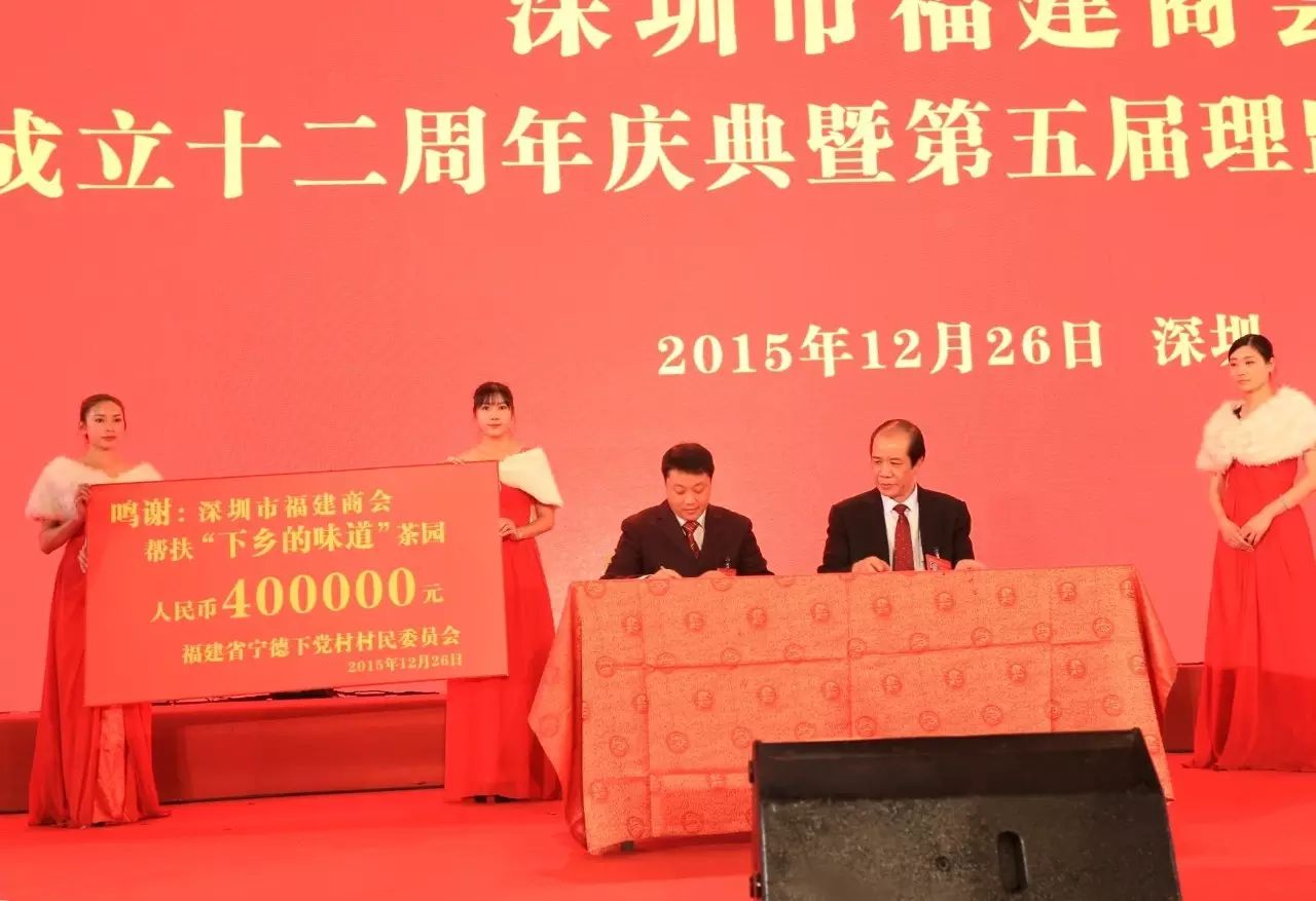 2017年福建省启动“百企帮百村”精准扶贫行动,深圳市福建商会立即在五届领导就职典礼大会上,发出“百企帮百村,商会有力量”精准扶贫倡议书,并结对帮扶福建宁德寿宁下党村。