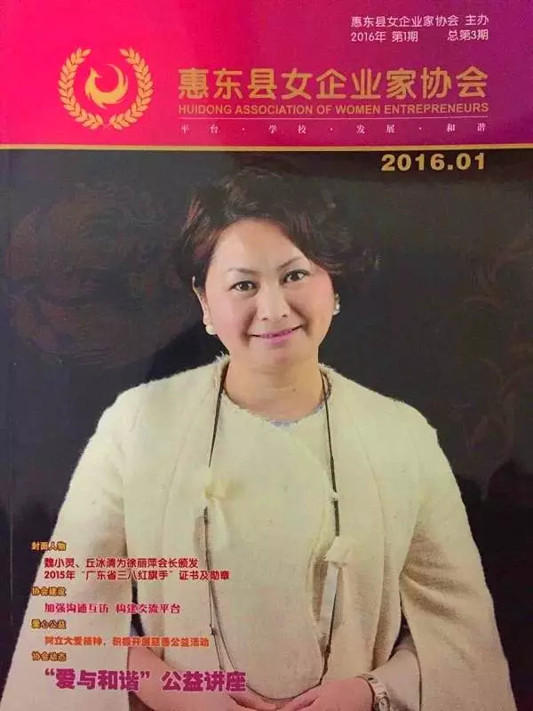 徐丽萍常务副会长还担任“惠东县女企业家协会”会长,年前,组织举办了一场以“金凤腾飞”为主题的协会成立二周年庆典暨新春团拜会。惠州市、惠东县有关部门领导到会祝贺,《惠东新闻》作了专门的报道。有关领导在讲话中充分肯定了协会一年来的工作,希望继续发挥桥梁纽带作用,创新服务理念,加强政策引导,活跃联谊交流,关心社会事业,共同构筑幸福和谐社会。会上举行了颁奖仪式,演唱演绎了气势铿锵、旋律优美的协会原创的会歌《商海女英赞》。