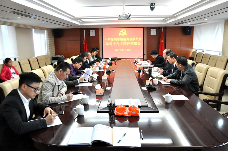 11月25日上午,深圳市福建商会党委组织召开了学习十九大精神座谈会,党委书记黄祖仁、副书记、纪委书记陈加明,副书记陈明旗以及龙岩商会、三明商会、莆田商会、漳州商会、党委办等支部书记、党员参加了座谈会。