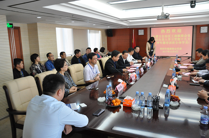 12月4日上午9时30分,内蒙古自治区工商联、商会党组织负责人学习贯彻十九大精神专题培训班一行43人莅临深圳市福建商会参观学习并进行座谈交流,我会党委副书记、纪委书记陈加明,党委副书记陈明旗受会长兼党委书记黄祖仁先生和秘书长吴天转先生的委托参加本次座谈会。