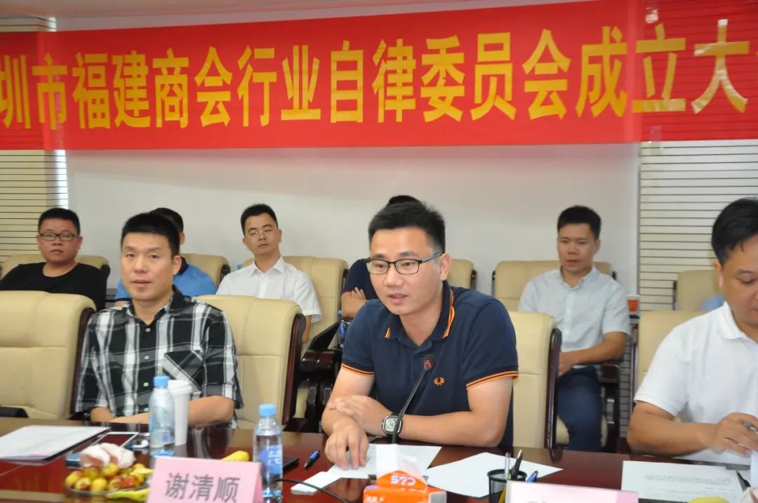 随后进行深圳市福建商会行业自律委员会成立大会,吴天转秘书长主持会议,党委副书记、常务副秘书长陈明旗主持议程。党委副书记、纪委书记、执行秘书长陈加明向大家传达深圳市纪委、市“两新”党工委、市民政局[2018]1号文件精神,会上审议并通过“深圳市福建商会行业自律委员会”架构及成员名单(草案)、商会章程中增加党建、行业自律委员会的职权内容(草案)、修改“深圳市福建商会诚信自律公约”内容(草案)。