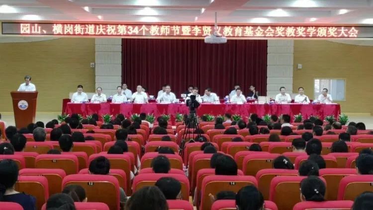 9月11日下午,园山、横岗街道庆祝第34个教师节暨李贤义教育基金会奖教奖学颁奖大会在吉溪中学举行,会议对优秀教育工作者进行奖励。市政协主席戴北方及全国政协委员、深圳市福建商会创会会长李贤义等出席大会。