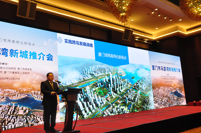 招商会由厦门市委交通运输工委委员、市交通运输局副局长、厦门市马銮湾新城指挥部常驻副总指挥黄锦城主持。厦门市自然资源和规划局局长、厦门市马銮湾新城指挥部常务副总指挥龚建阳就马銮湾新城重点招商项目展开推介。