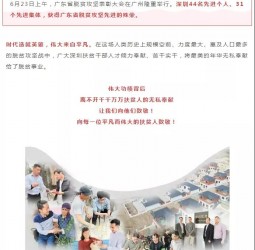 6月23日上午,广东省脱贫攻坚表彰大会在广州隆重举行。深圳44名先进个人、31个先进集体,获得广东省脱贫攻坚先进的殊荣。深圳市福建商会执行会长、茂雄实业有限公司董事长杨连成获得“广东省脱贫攻坚先进个人”的殊荣。时代造就英雄,伟大来自平凡。在这场人类历史上规模空前、力度最大、惠及人口最多的脱贫攻坚战中,广大深圳企业家行善举,播大爱,倾力奉献、苦干实干,无私奉献给了脱贫事业。 伟大功绩背后,离不开千千万万扶贫人的无私奉献。正是有无数个这样平凡而伟大的闽籍扶贫人,才使得深圳市福建商会的名声更响,深圳闽商的名片更